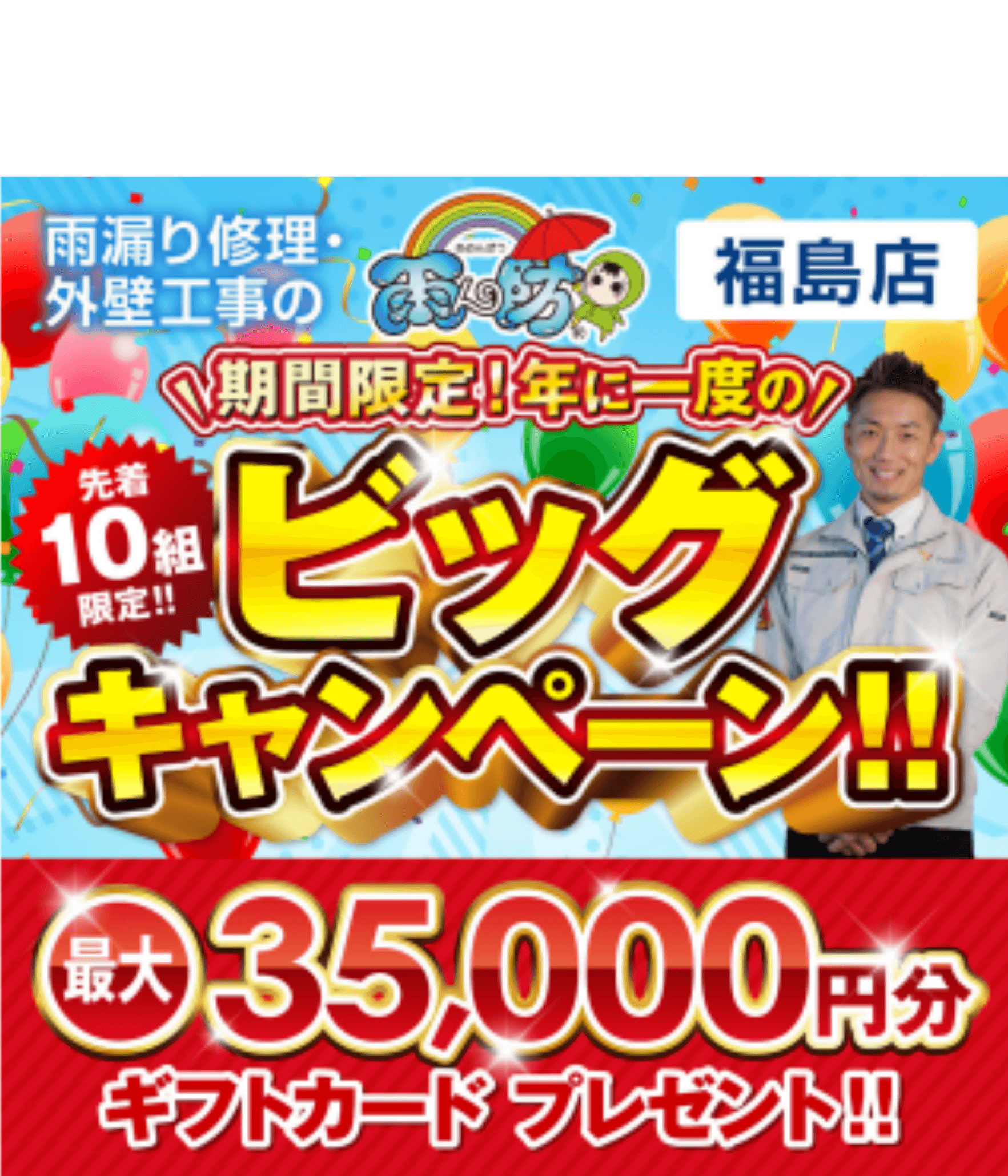 雨漏り、天井のシミ、壁のひびわれ、雨どいの破損でお困りではありませんか?福島県の雨ん防にお任せください!